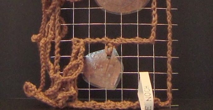 The production material used is always the same, a wire fence in combination with the crocheted wool. The names of the objects are important, and about half of them can be used in self therapy as a help.